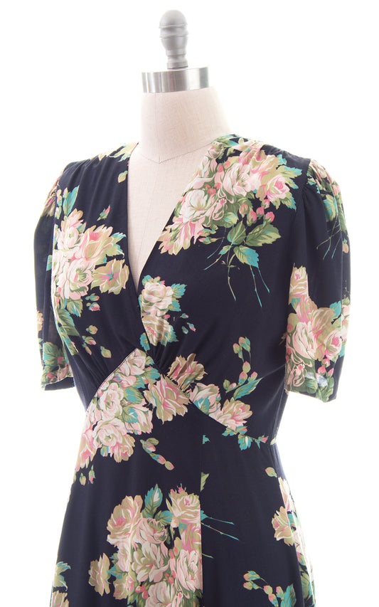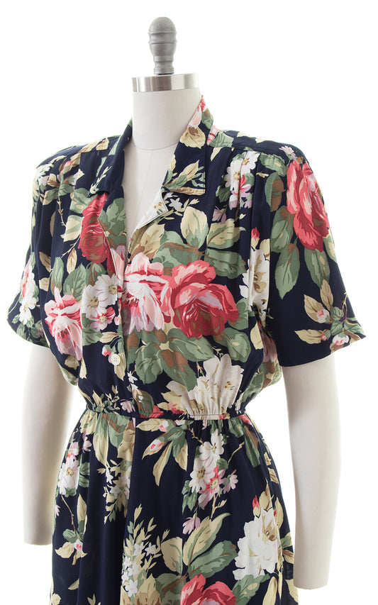 1980s Carol Anderson Rose Print Rayon Shirtwaist Dress with Pockets | small/medium