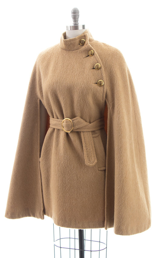 1960s 1970s Beige Wool Mohair Belted Cape | small/medium/large