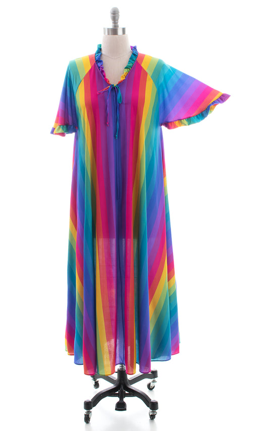 1970s 1980s Rainbow Striped Maxi Tent Dress | x-small to x-large