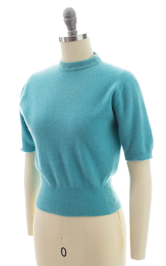 1950s Mint Wool-Angora Knit Cardigan | medium/large