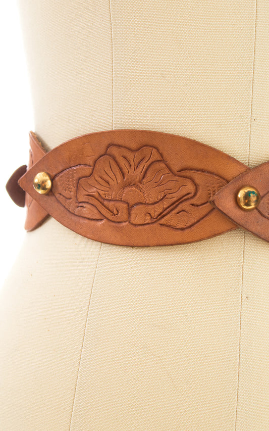 1970s Floral Tooled Leather Cinch Belt | x-small/small
