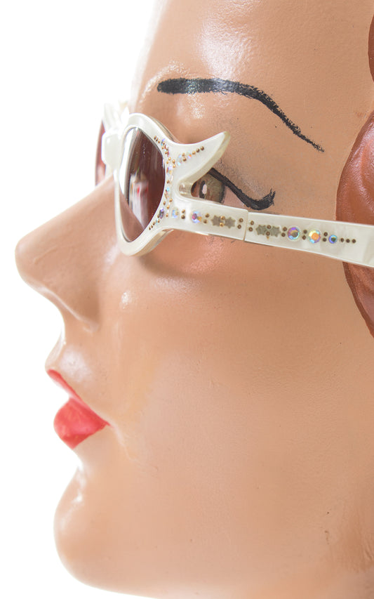 1950s Rhinestone Pearlescent Carved Lucite Cat Eye Sunglasses