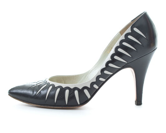 1980s Two-Tone Cutout Leather Heels | size US 6
