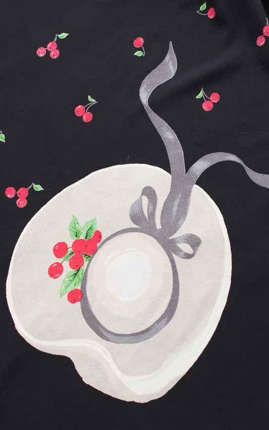 1990s does 1950s Hat & Cherries Novelty Border Print Rayon Skirt | medium/large