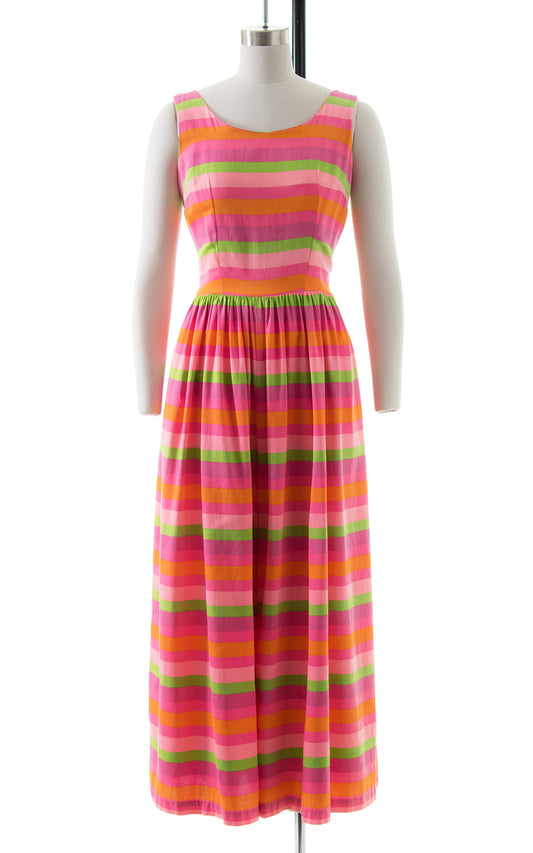 1970s Pink Striped Tiered Cotton Sundress | medium/large