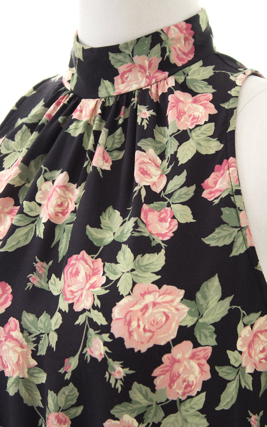1980s Pink Rose Rayon Sundress with Pockets | x-small/small/medium