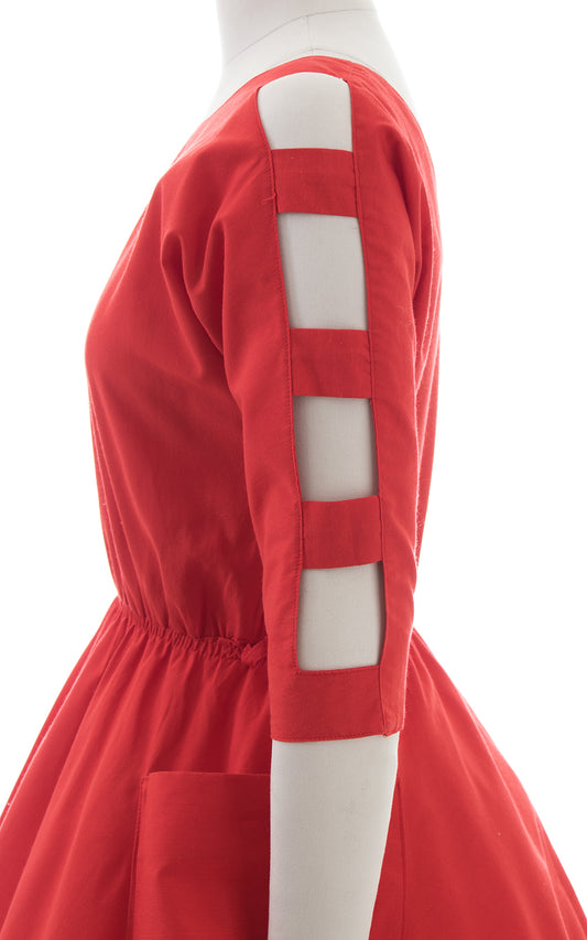 1980s Cutout Sleeves Red Dress with Pockets | small/medium