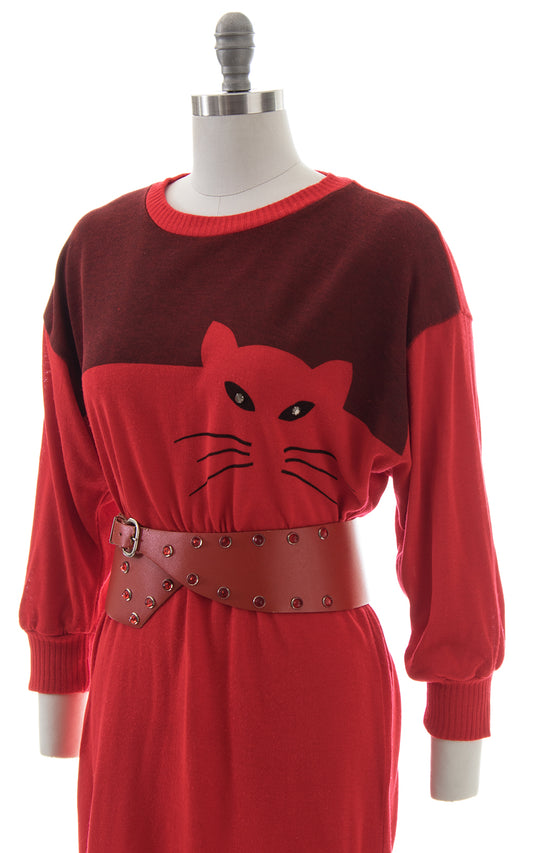 1980s Cat Novelty Knit Sweater Dress | small/medium