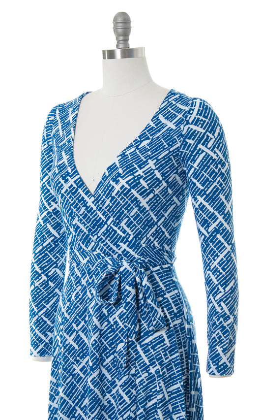 1970s Geometric Jersey Knit Maxi Wrap Dress | small/medium