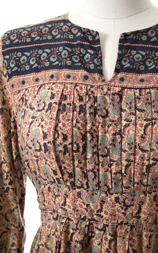 1970s Kaiser Floral Paisley Cotton Bishop Sleeve Dress | small