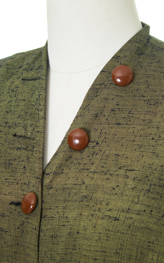 1940s 1950s Green Slubbed Shirtwaist Dress | small/medium