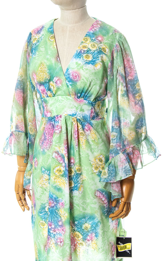 1970s Deadstock Floral Angel Sleeve Dress | small/medium