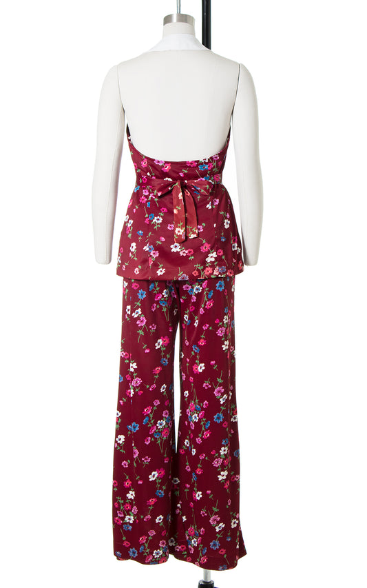 1970s Floral Open Back Halter Top & Bell Bottoms Set | small