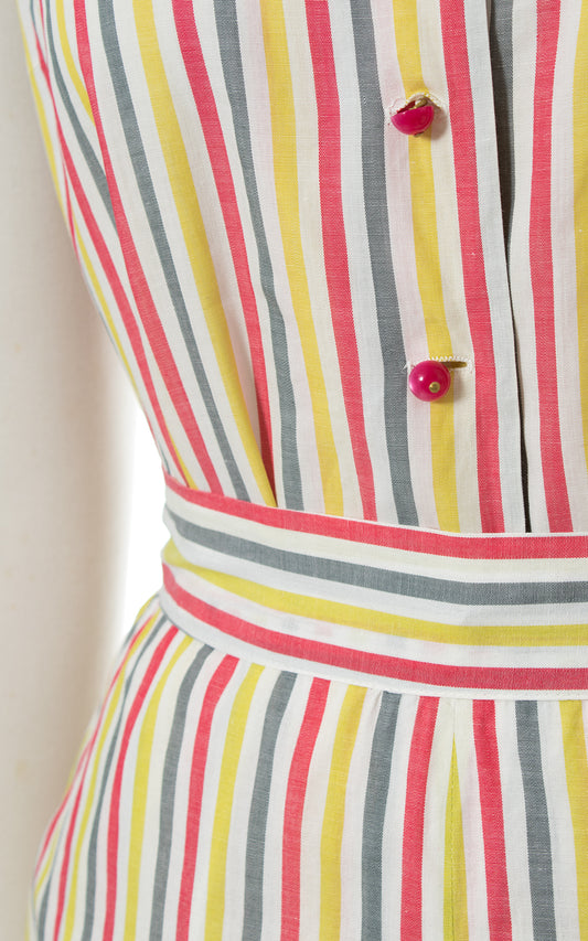 1950s Striped Chambray Blouse & Shorts Set | xs/small