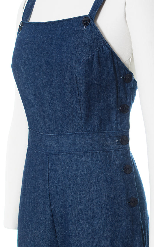 Modern 1940s/1970s Style Denim Side Button Overalls | small/medium