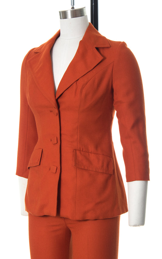 1970s Burnt Orange Wool Bell Bottom Pantsuit | x-small