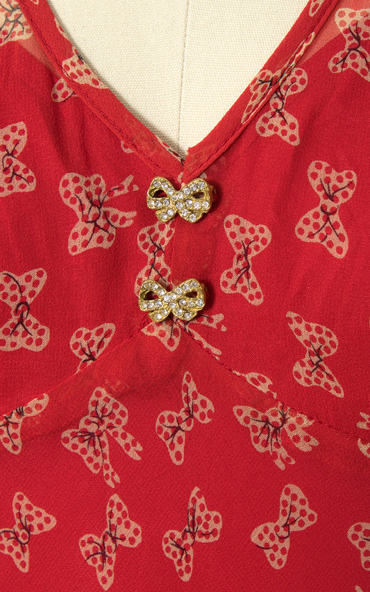 1990s Laundry by Shelli Segal Bow Novelty Print Silk Chiffon Dress | x-small