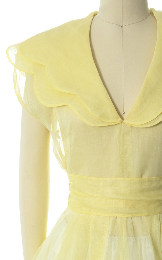 1950s Pastel Yellow Sheer Organza Scalloped Collar Dress | x-small