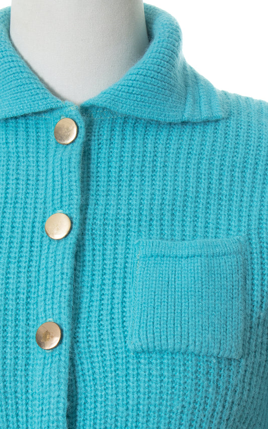 1950s Robin's Egg Blue Knit Cropped Cardigan | small/medium