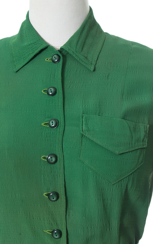 1930s 1940s Emerald Green Rayon Crepe Blouse | small