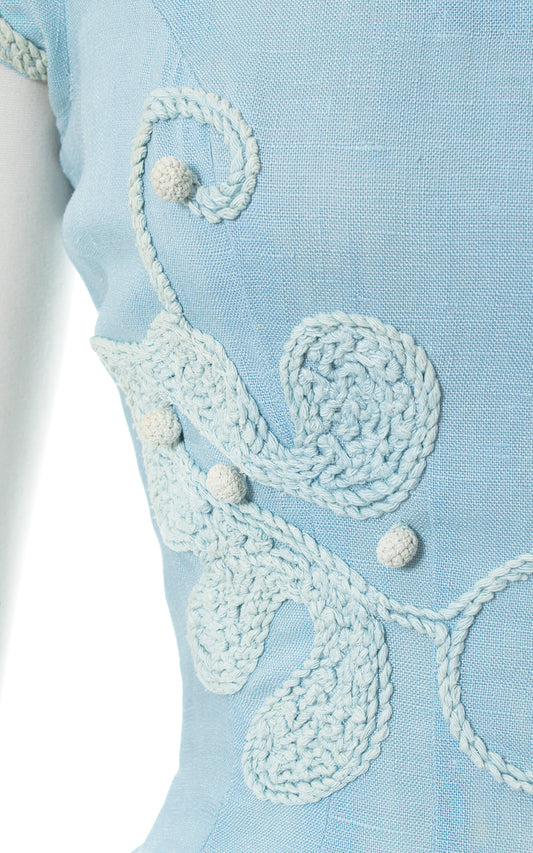 1950s Soutache Embroidered Pom Pom Linen Dress | small