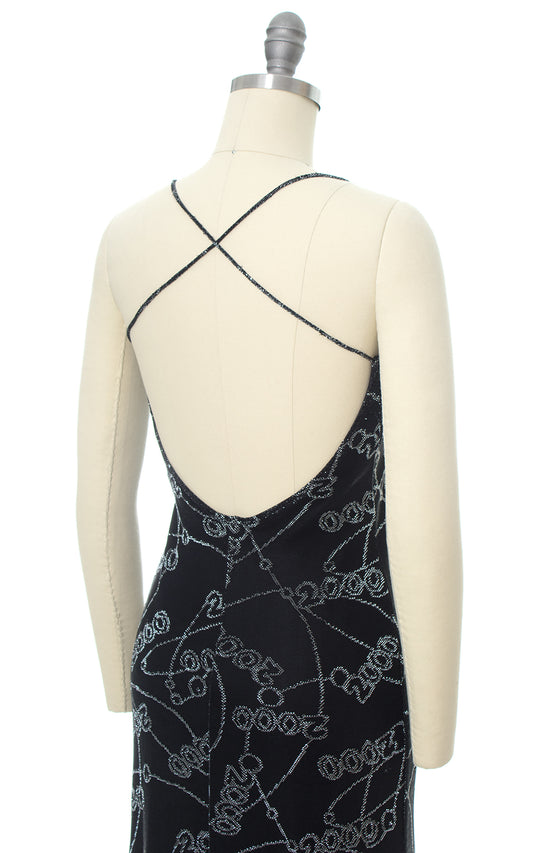 2000s Metallic Y2K Novelty Open Back Maxi Dress | x-small/small