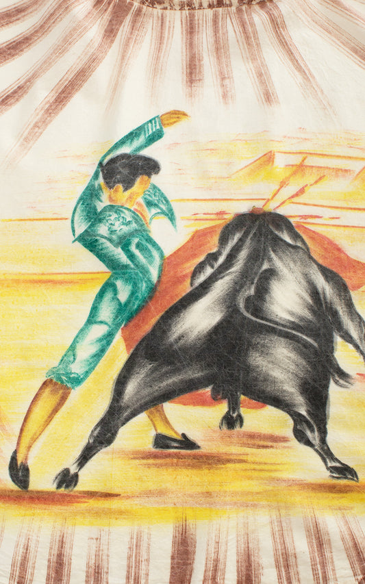 1950s Bullfighter Novelty Print Hand-Painted Mexican Circle Skirt | x-small/small/medium