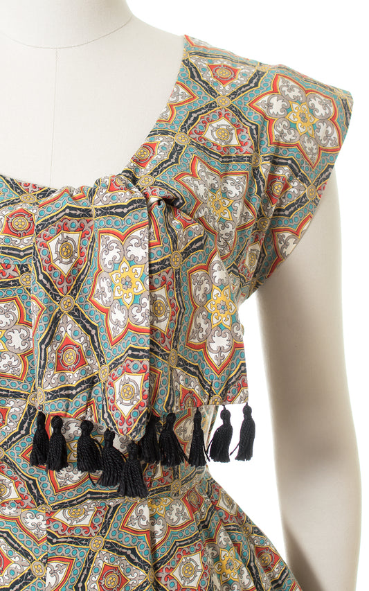 1950s Gondolier / Sailor Novelty Print Tied Straps Sundress | small/medium