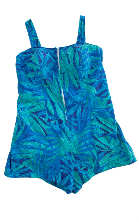 1960s Style Tropical Leaf Cotton Romper | x-large