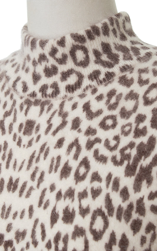 1990s Leopard Print Angora Knit Sweater Top | small/medium