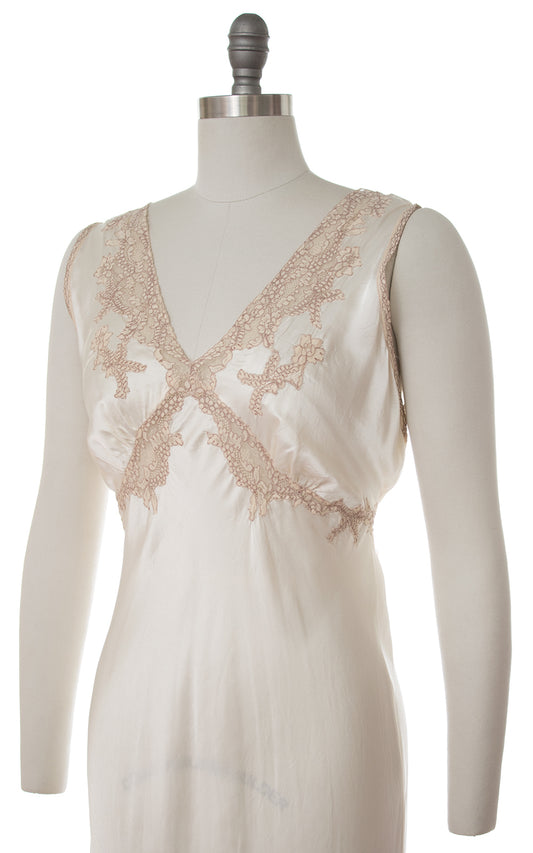 1930s Bias-Cut Silk Charmeuse & Lace Nightgown | small/medium