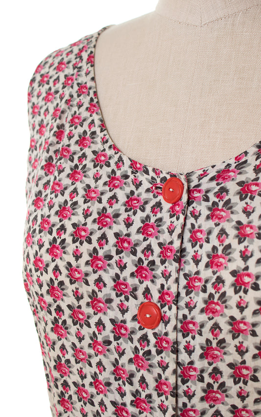 1940s Rose Print Cotton Shirtwaist Sundress | large/x-large