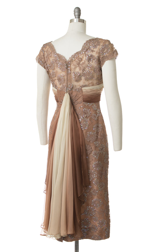 1950s Lace Wiggle Dress with Ombré Silk Chiffon Train | medium