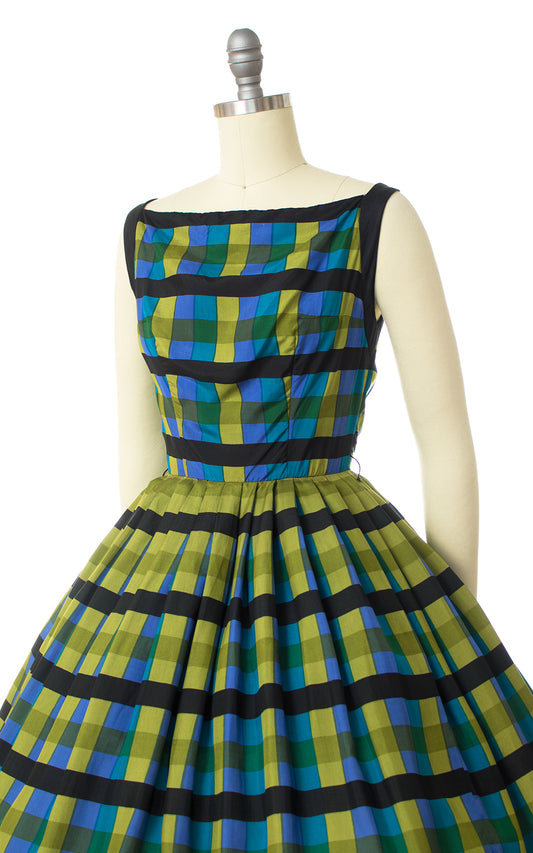 1950s Silk Plaid Checkered Sundress | x-small/small