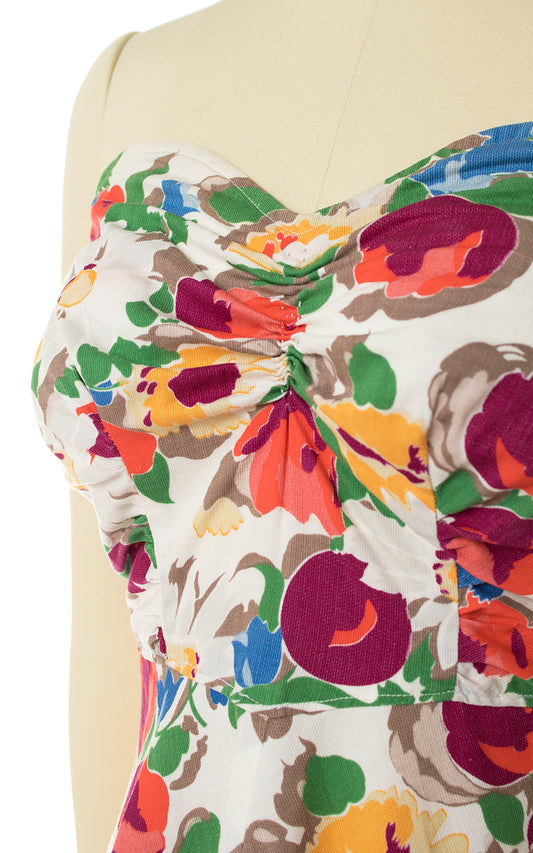1930s 1940s Floral Cotton Strapless Maxi Dress | x-small/small