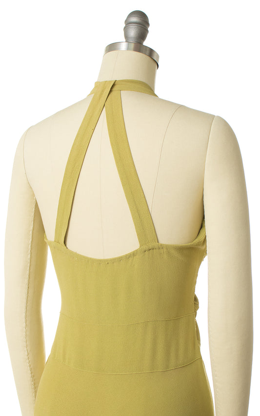 1930s Chartreuse Bias Cut Rayon Crepe Gown | x-small/small
