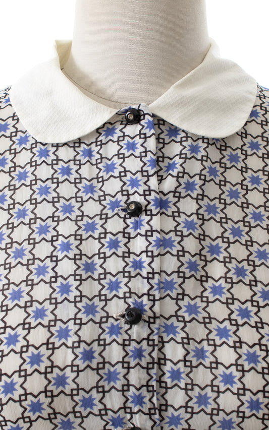 1940s Geometric Cold Rayon Shirtwaist Dress | medium