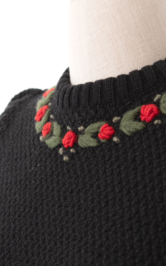 1980s Austrian Rose Embroidered Wool Sweater | medium/large