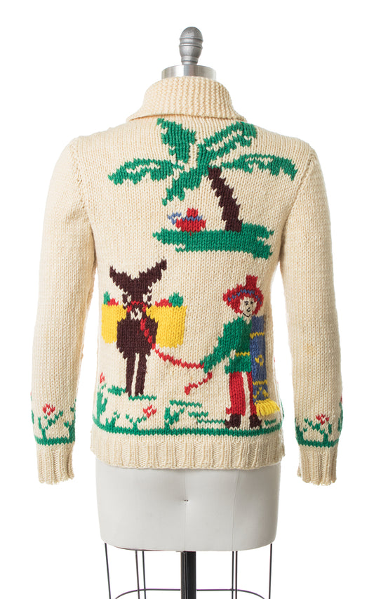 1950s Mexican Novelty Wool Cowichan Cardigan | small/medium