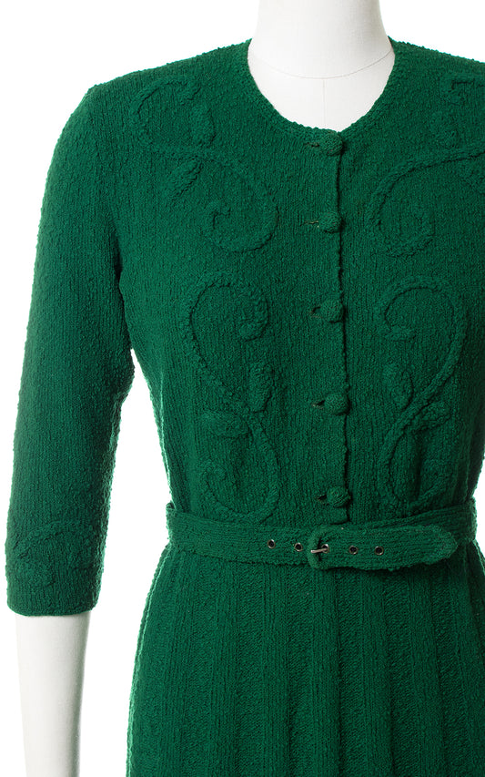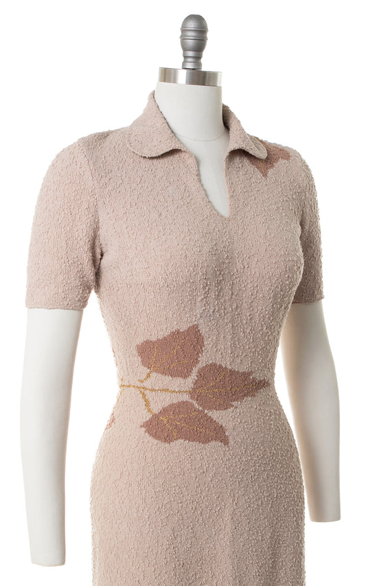 1950s Metallic Leaf Bouclé Knit Wool Sweater Dress | xs/small/medium