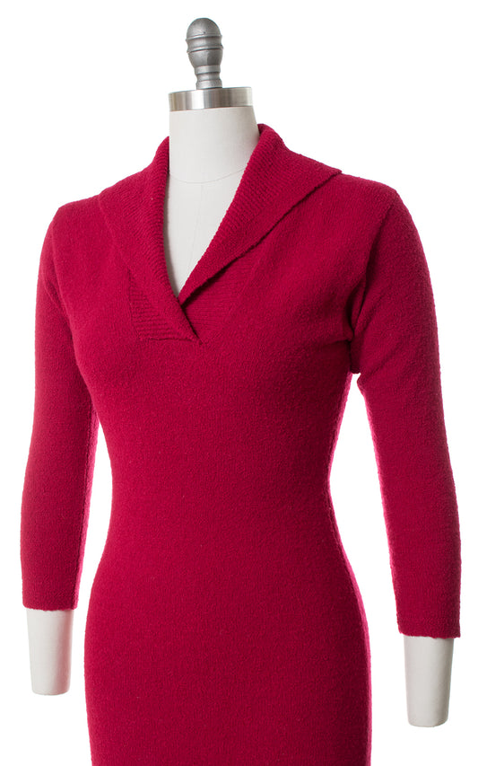 1950s Raspberry Wool Chenille Sweater Dress | xs/small/medium