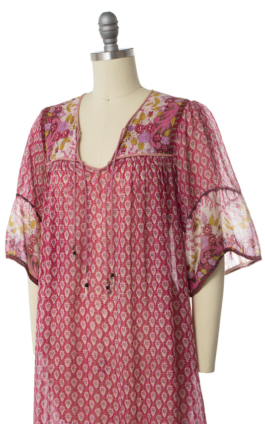 1970s Indian Cotton Pink Floral Dress | xs/small
