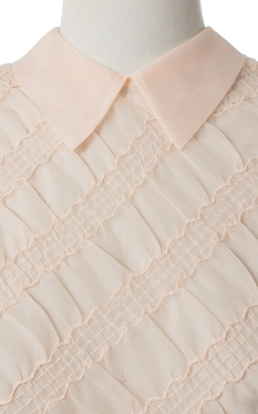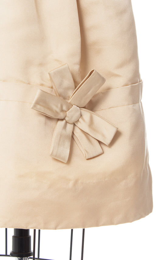 $65 DRESS SALE /// 1950s Cream Silk Bow Appliqué Dress | x-small