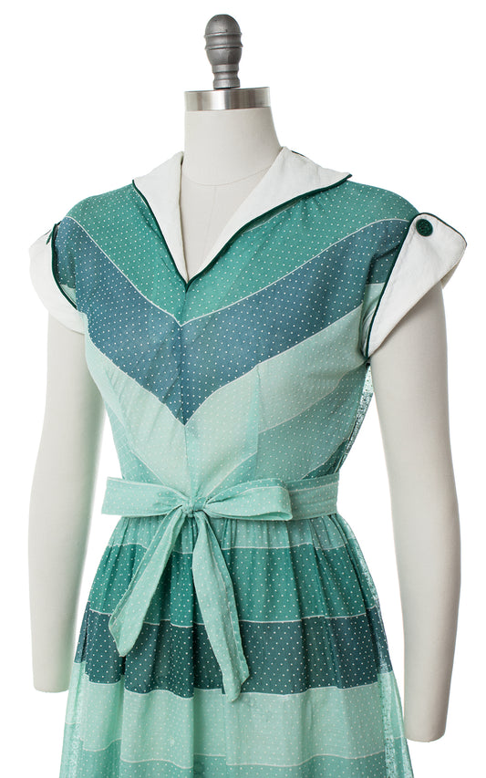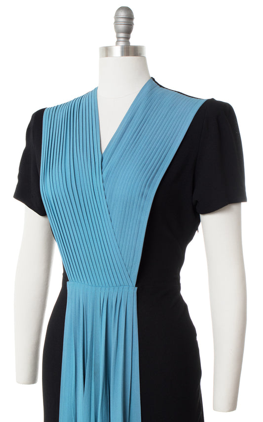 1940s Color Block Rayon Moss Crepe Gown | medium