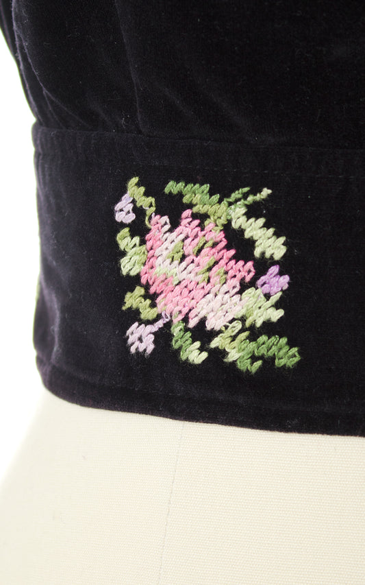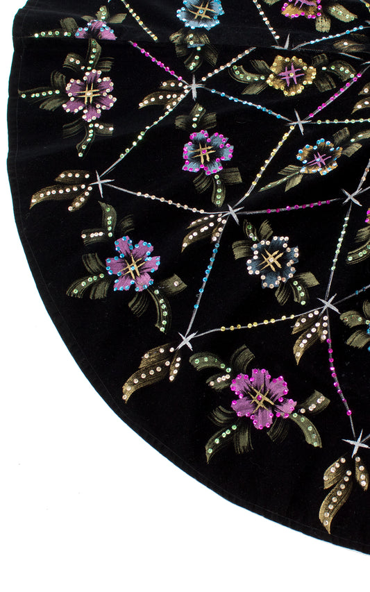 1950s Mexican Metallic Floral Sequin Velvet Circle Skirt | medium