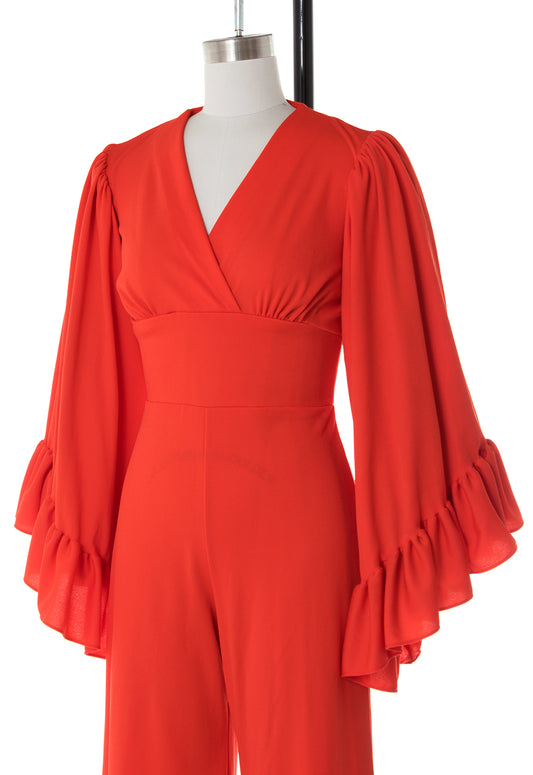 1970s Angel Sleeve Red Jumpsuit | xs/small