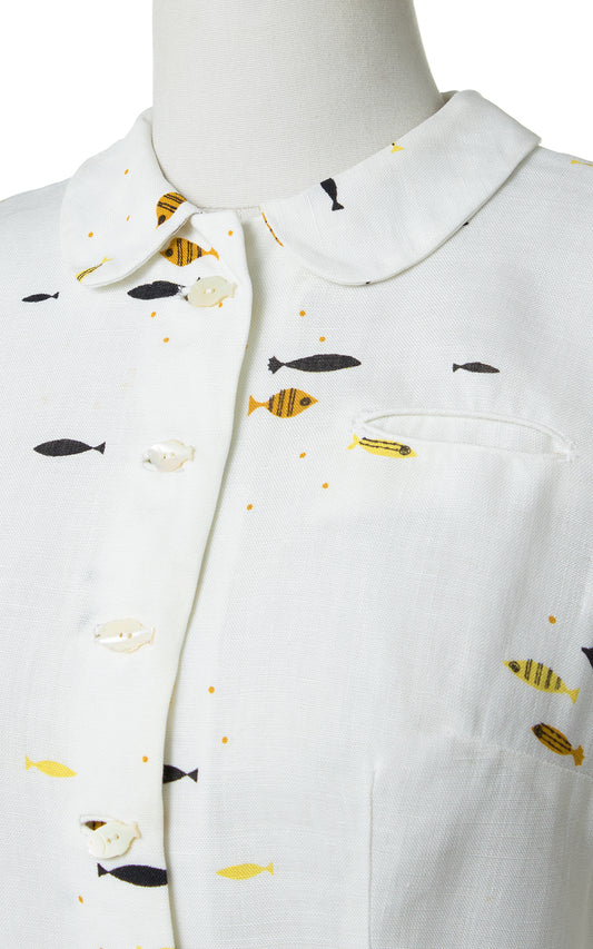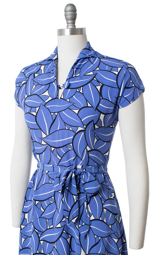1960s Leaf Printed Rayon Crepe Dress | small/medium