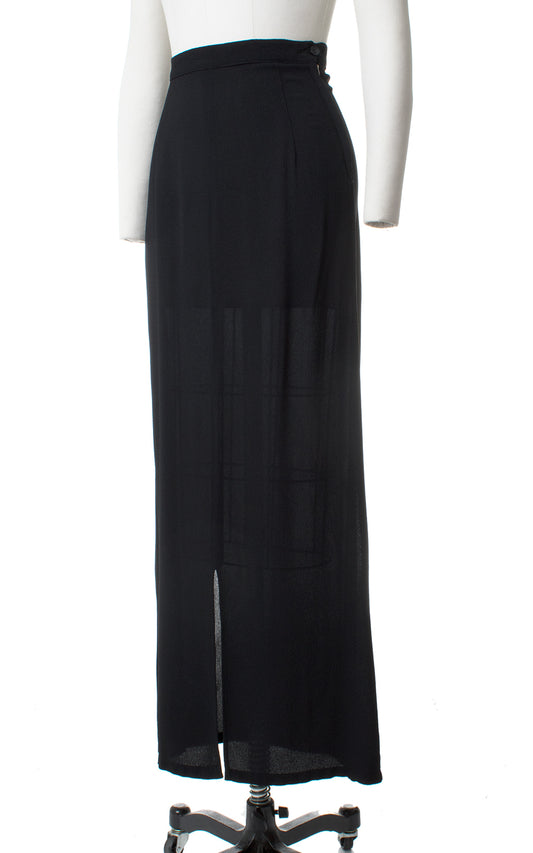 1930s Black Rayon Crepe Skirt with Front Slit | small