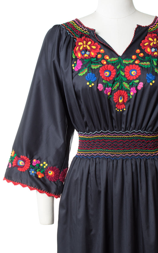 Vintage Floral Embroidered Peasant Dress | xs/small