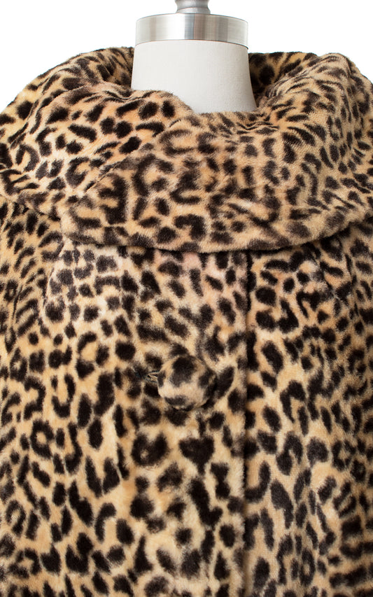 1950s 1960s Leopard Print Faux Fur Swing Coat | x-large